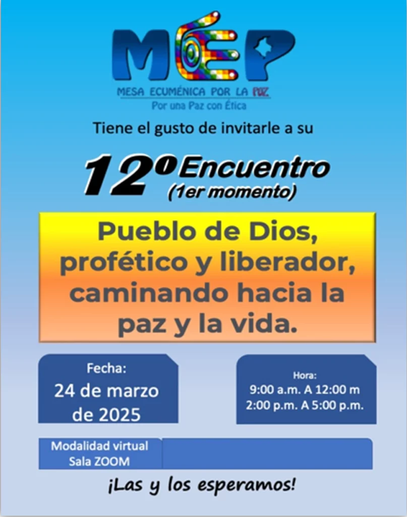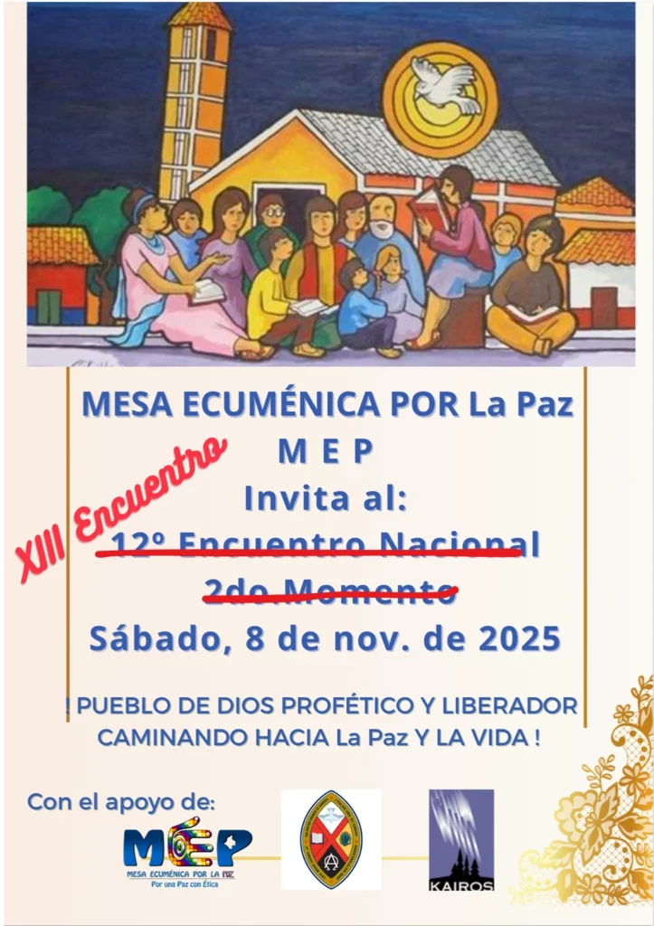 La Mesa Ecuménica por la Paz es un proceso en el movimiento ecuménico, social y popular, conformado por individualidades, diferentes expresiones de iglesias y comunidades que desde la fe y práctica liberadora, optamos por la construcción de una paz con justicia social y ambiental.